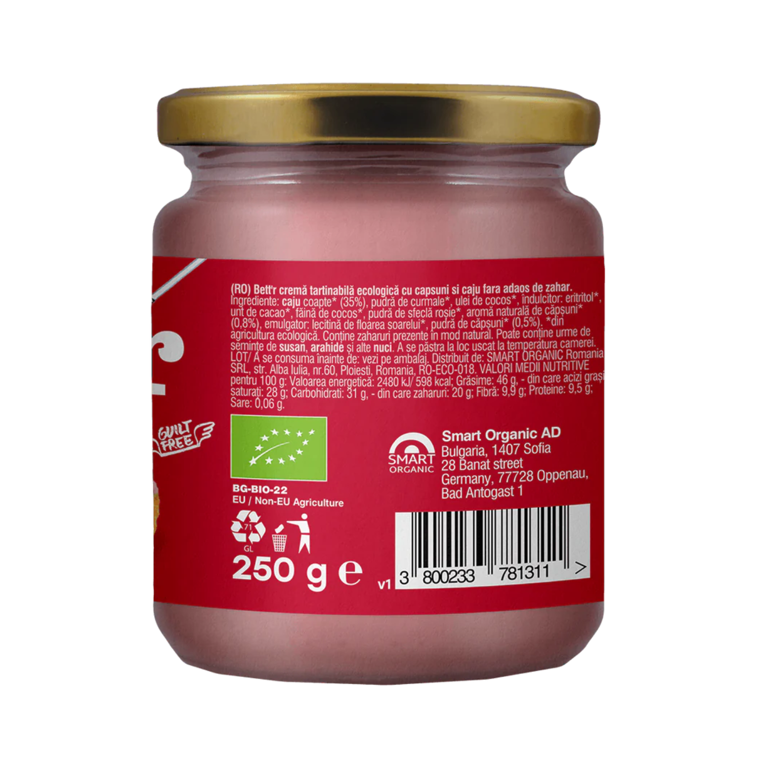 Nuostabaus skonio užtepas, niekas negali atsispirti glotniai tekstūrai, vasariškam braškių skoniui. Tinka naudoti visur, kur tik sugalvosite. Paskanins blynelius, krekerius, sausainius ar šviesios duonos riekelę. O galbūt šaukšteliu tiesiai iš indelio? Be pridėtinio cukraus, be palmių riebalų, sveika alternatyva populiariausiems užtepams. Mūsų vaikams labai patinka, išbandykite ir Jūs!
