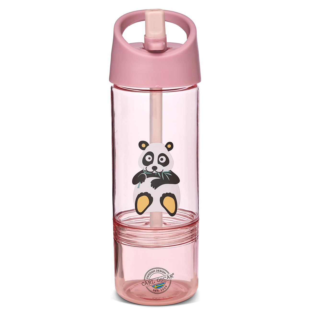 Gertuvė su nusukamu indeliu apačioje, kuriame galima įsidėti užkandžių į kelionę. Rankenėlė patogi mažoms rankytėms, atlenkiamas snapelis nepralaidus vandeniui ir lengva gerti. Gertuvės talpa 300 ml, o apatinio indelio talpa 150 ml.