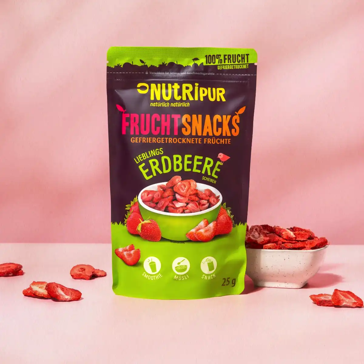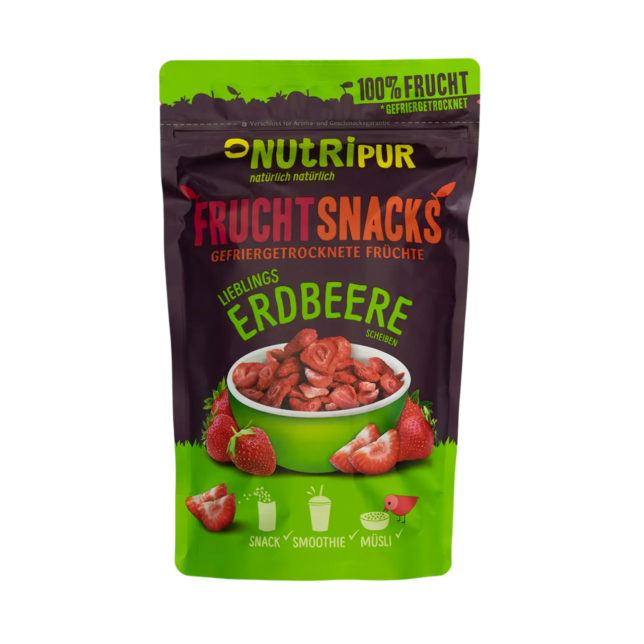 Štai sprendimas – liofilizuoti ekologiški vaisiai, pagaminti tik iš braškių. 100 % natūralu, jokių priedų, tik gryna vaisių galia – ir visa tai praktiškoje, daugkartinėje užsegamoje pakuotėje, puikiai tinkančioje pasiimti su savimi kelionėje, darželyje, mokykloje. Liofilizuotos braškės visada yra gardus potyris ir puikus jūsų sąmoningos mitybos papildymas !